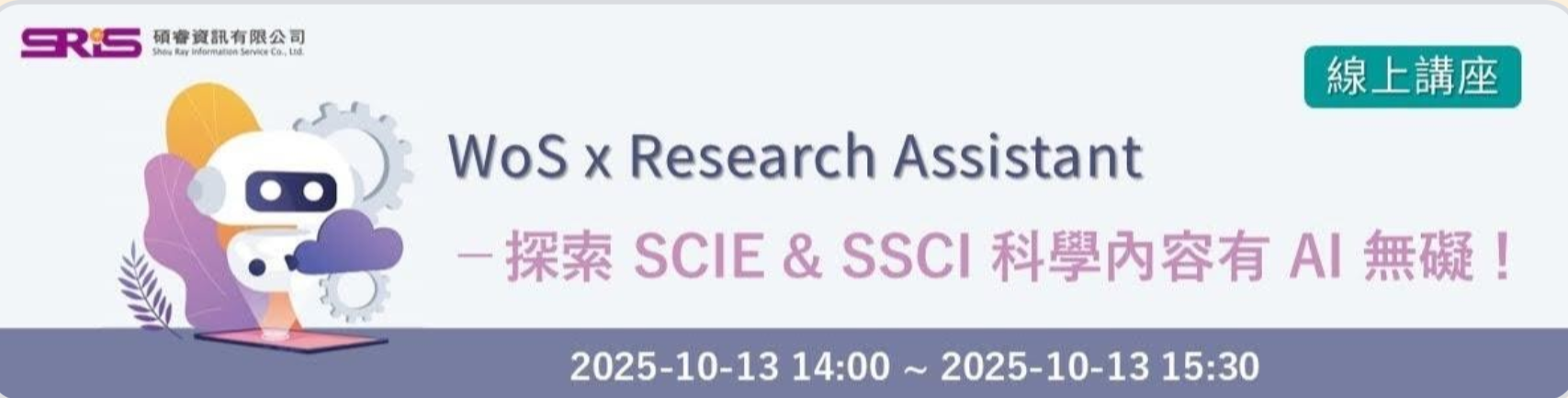 [電子資源公告] Web of Science X Research Assistant 線上講座活動