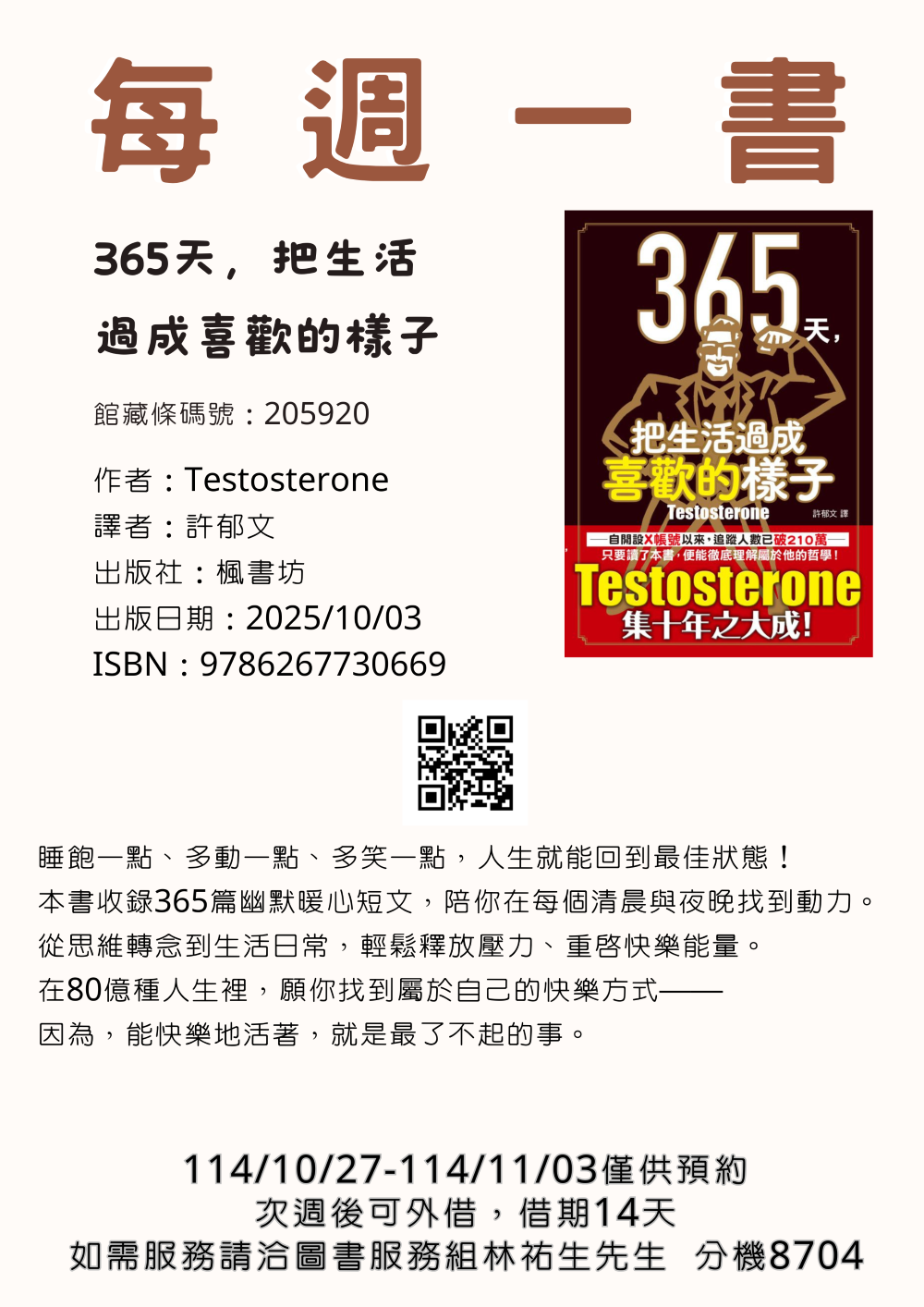 [圖資處公告] 每週一書 365天,把生活過成喜歡的樣子 : 讓每天都絕好調又超快樂的話語