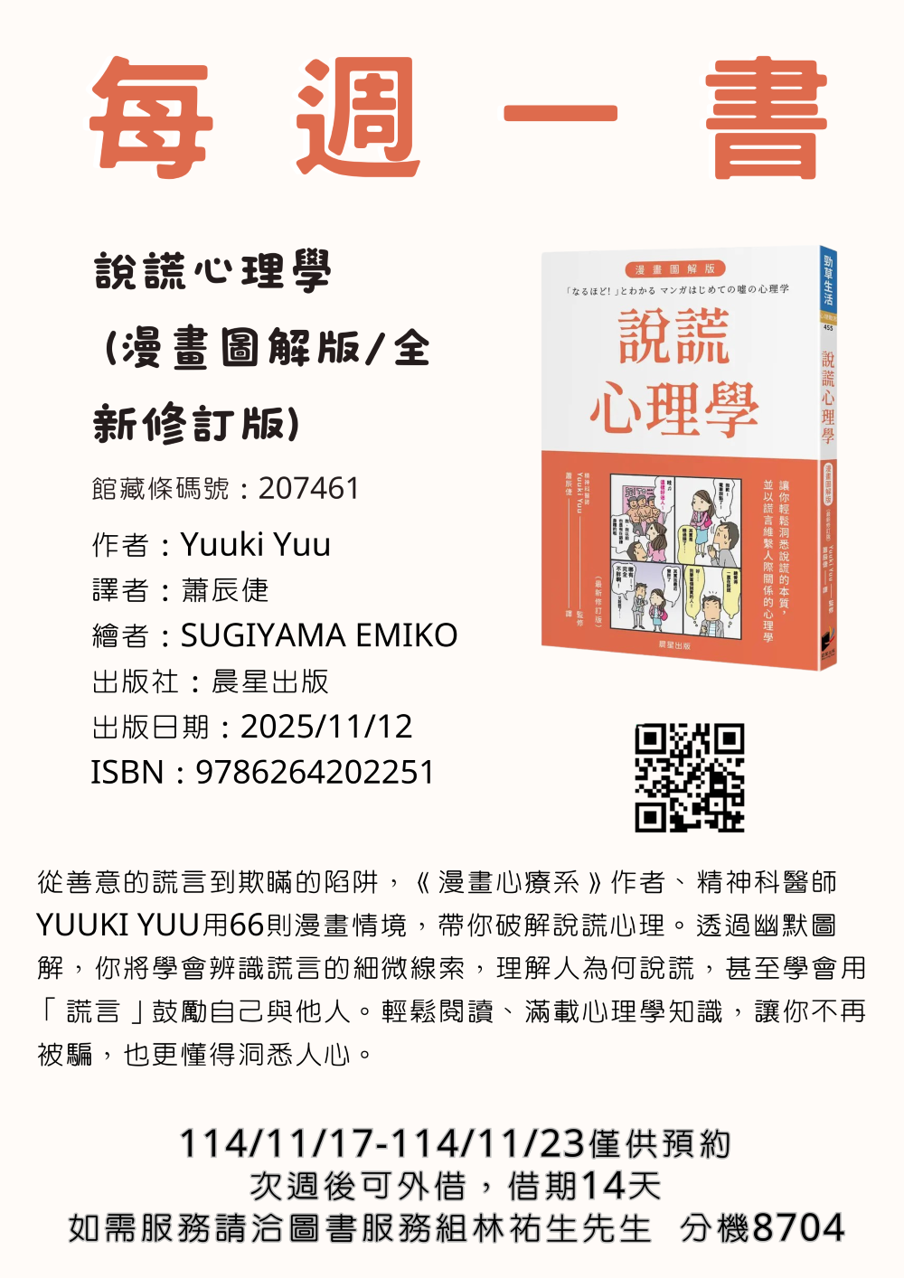 [圖資處公告] 每週一書 說謊心理學 : 漫畫圖解版(全新修訂版)