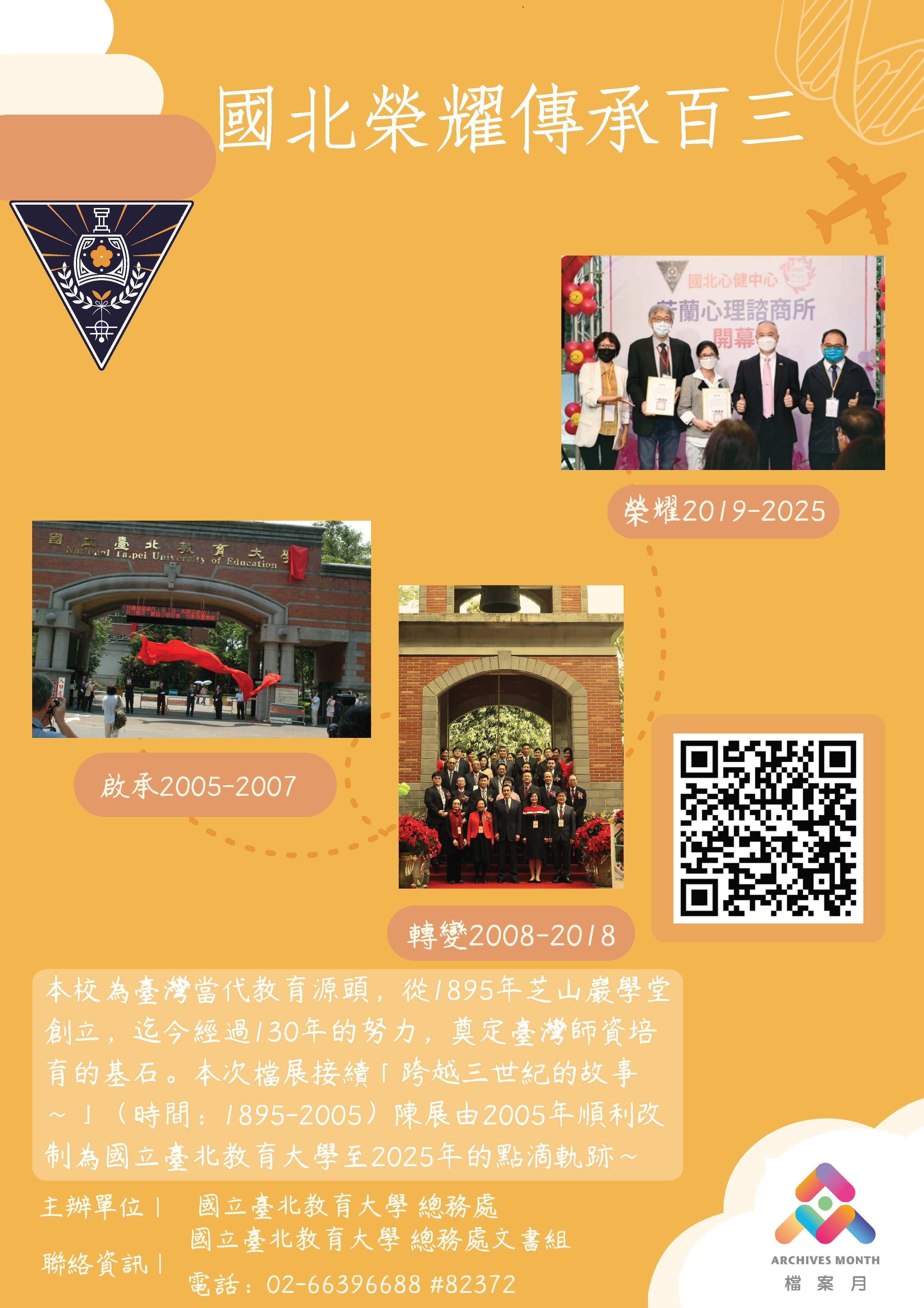 [校外訊息公告] 國立臺北教育大學「國北榮耀傳承百三」線上檔案展