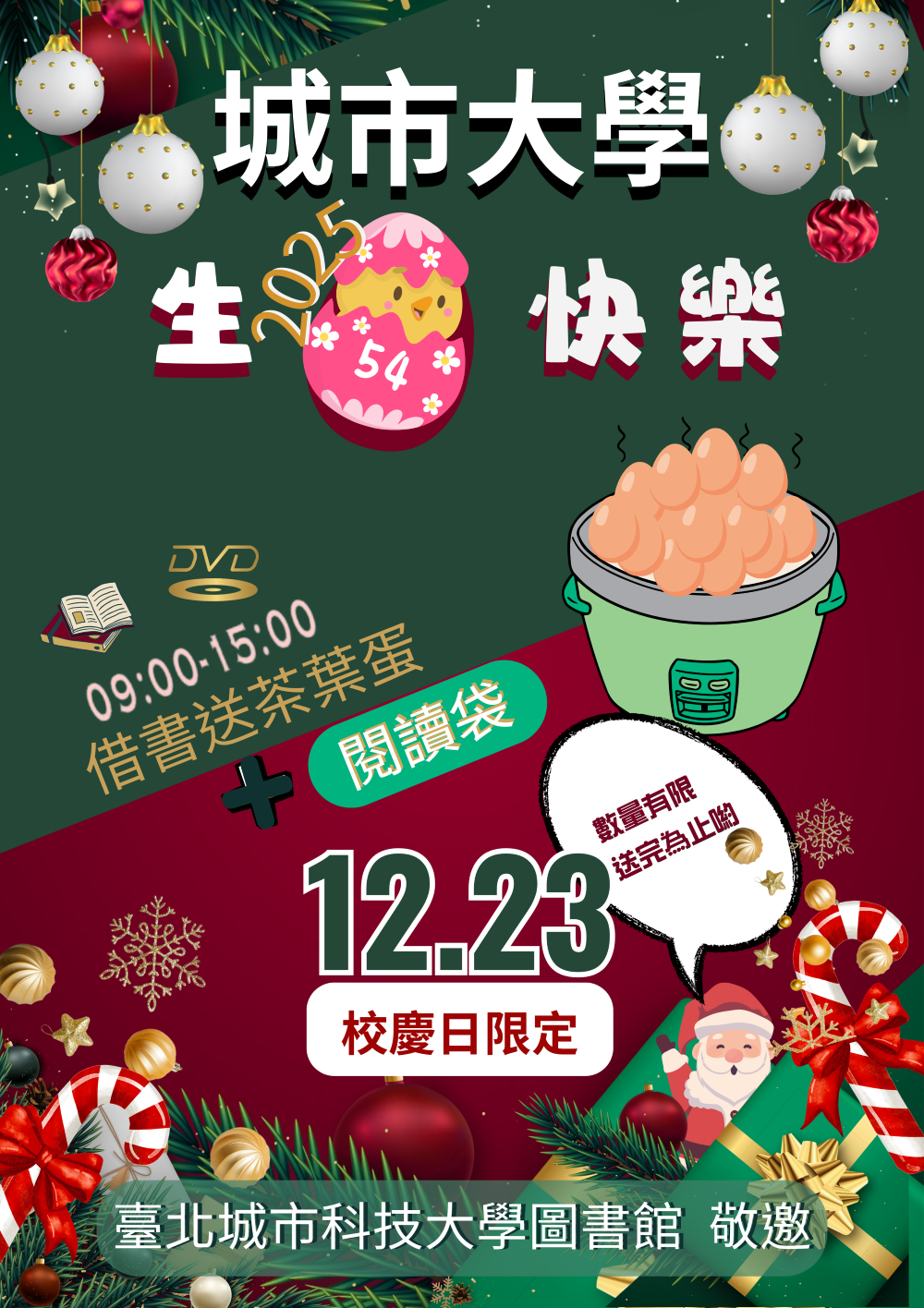[圖資處公告] 城市大學54周年校慶借書送茶葉蛋快閃活動